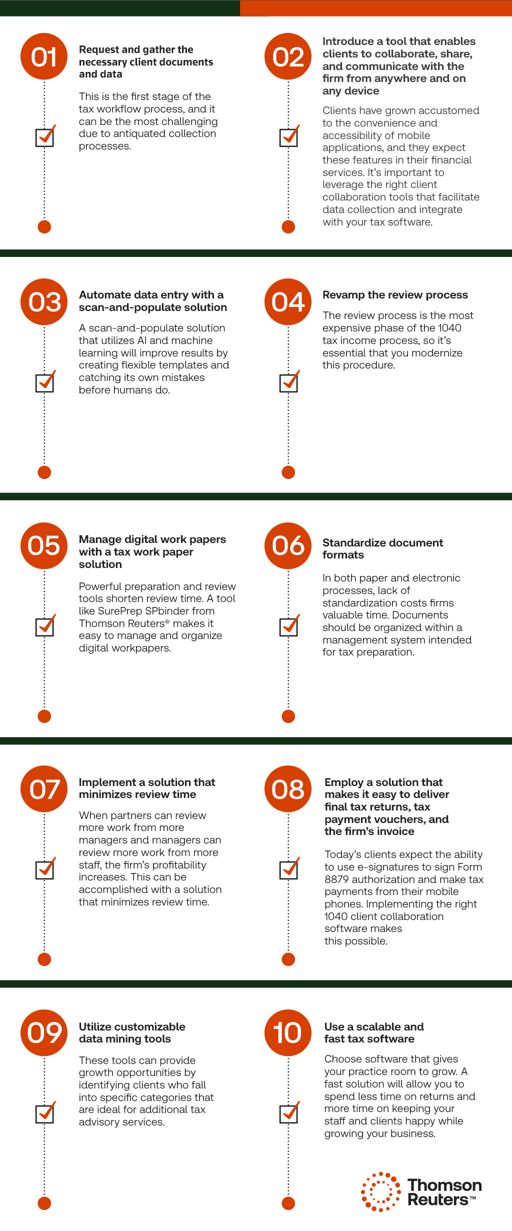Use this checklist to get started on the path to a seamless 1040 tax workflow and the opportunities that come with it.