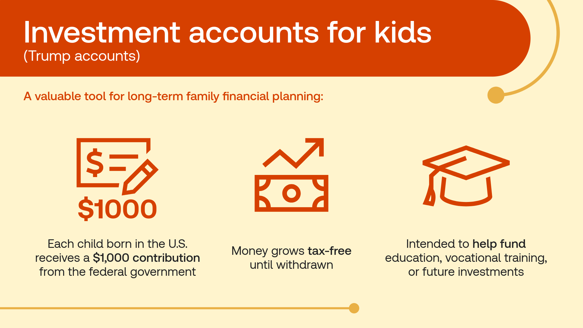 These tax-advantaged accounts, sometimes called “Trump Accounts,” work similarly to 529 plans: