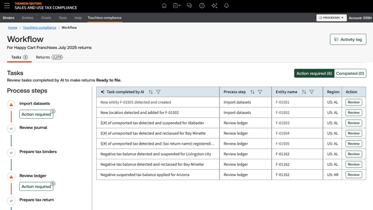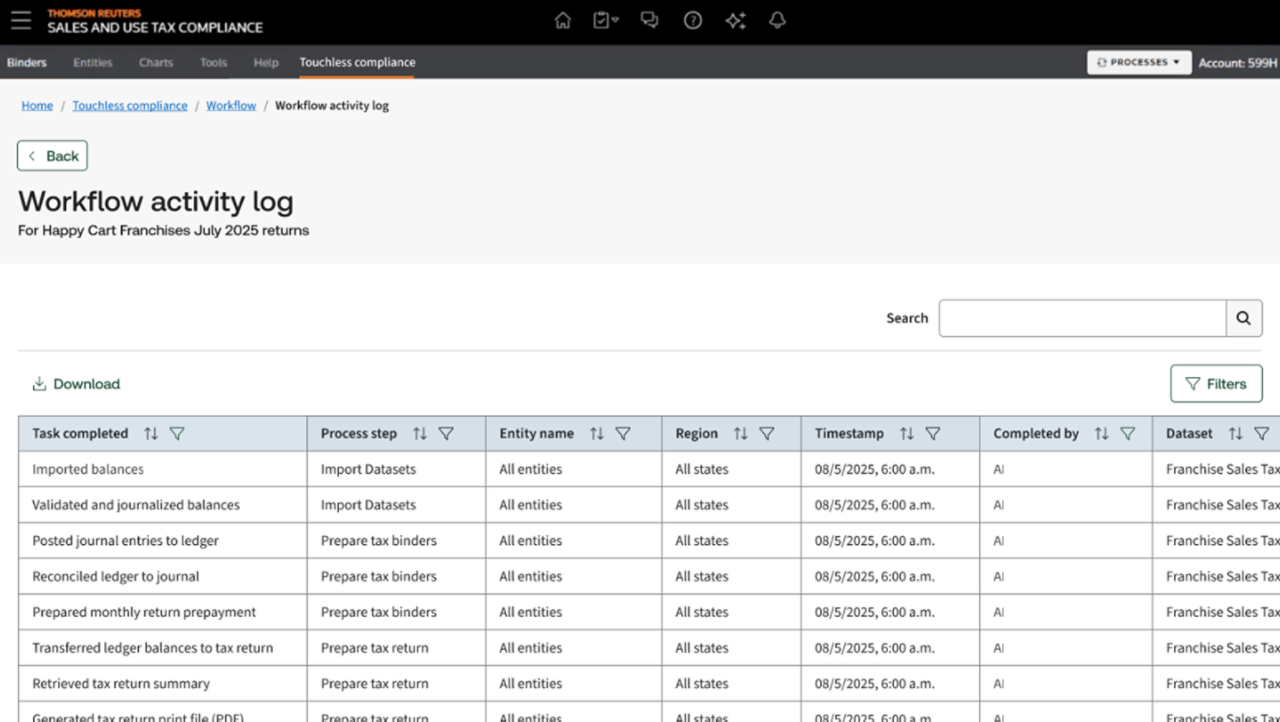 Connect enterprise resource planning (ERP) and business systems to create a unified, end‑to‑end compliance workflow without app switching. Configure review gates to balance automation with oversight and empower your team to intervene when needed.