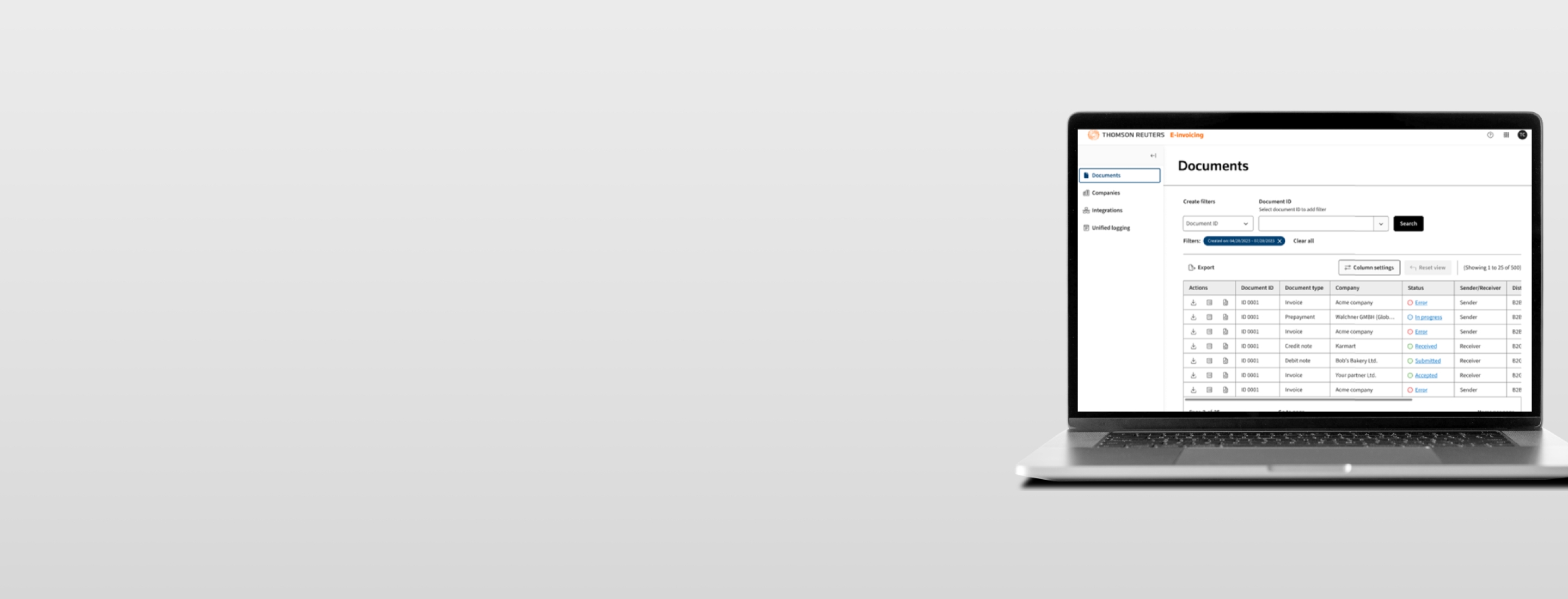 With ONESOURCE Pagero, especially when paired with the Thomson Reuters ONESOURCE tax suite, tax and IT teams no longer need to monitor mandate changes or worry about compliance.