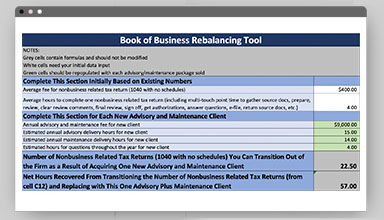Access customizable templates, pricing tools, client deliverables, and firm-development resources designed to help your team standardize services, communicate value clearly, and implement an advisory-led model with confidence.