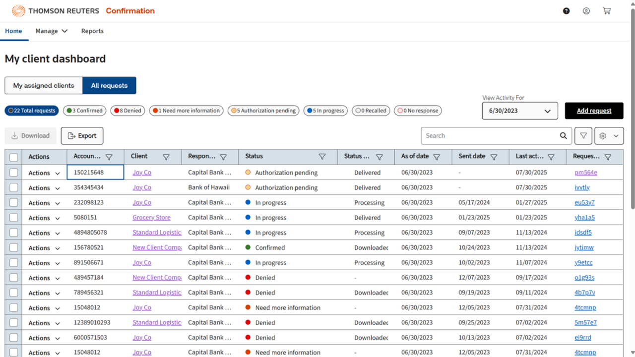 Easily and securely send over 100 confirmation types online to anyone, anywhere in the world, from one platform. Only Thomson Reuters provides the largest global network of validated responders and guarantees a response.